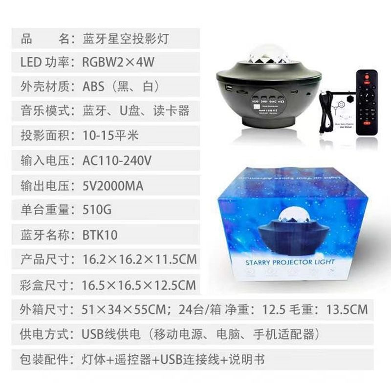 A starry light projector is a device that projects a starry sky or galaxy pattern onto the walls and ceiling of a room, creating a relaxing, cosmic atmosphere. It often features: